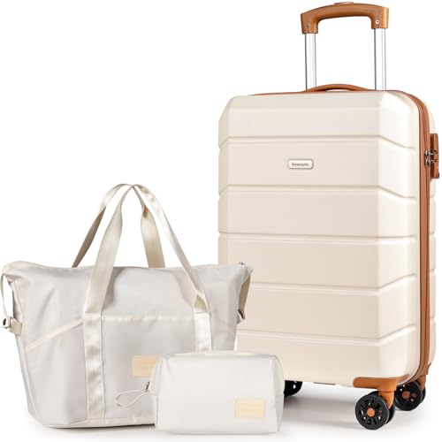 Kono Carry On Suitcase Small ABS+PC Hardshell Lightweight Travel Cabin Luggage with TSA Lock Spinner Wheels (Cream/Brown)