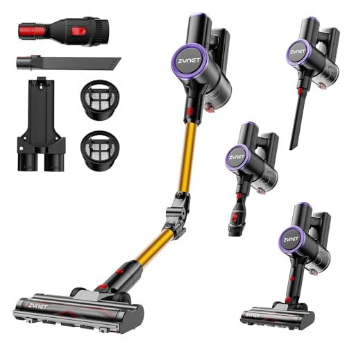 Zynet S9 Cordless Vacuum Cleaner, 45000Pa 500W 45Min Vacuum Cleaner, Stick Vacuum with Flexible Wand Design, Wall-mounted Charging, Green LED, Lightweight Vacuum for Hardwood Floor Carpet Car Pet Hair