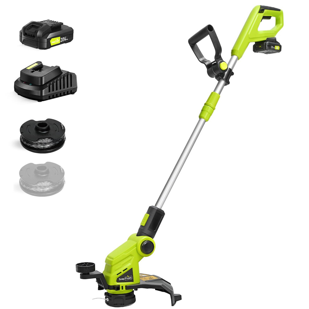 SnapFresh Cordless Grass Trimmer 20V 12In Cutting Width Adjustable Telescopic Handle Lightweight 4LB Auto-Feed Line Edger Cutter 2.0Ah Battery