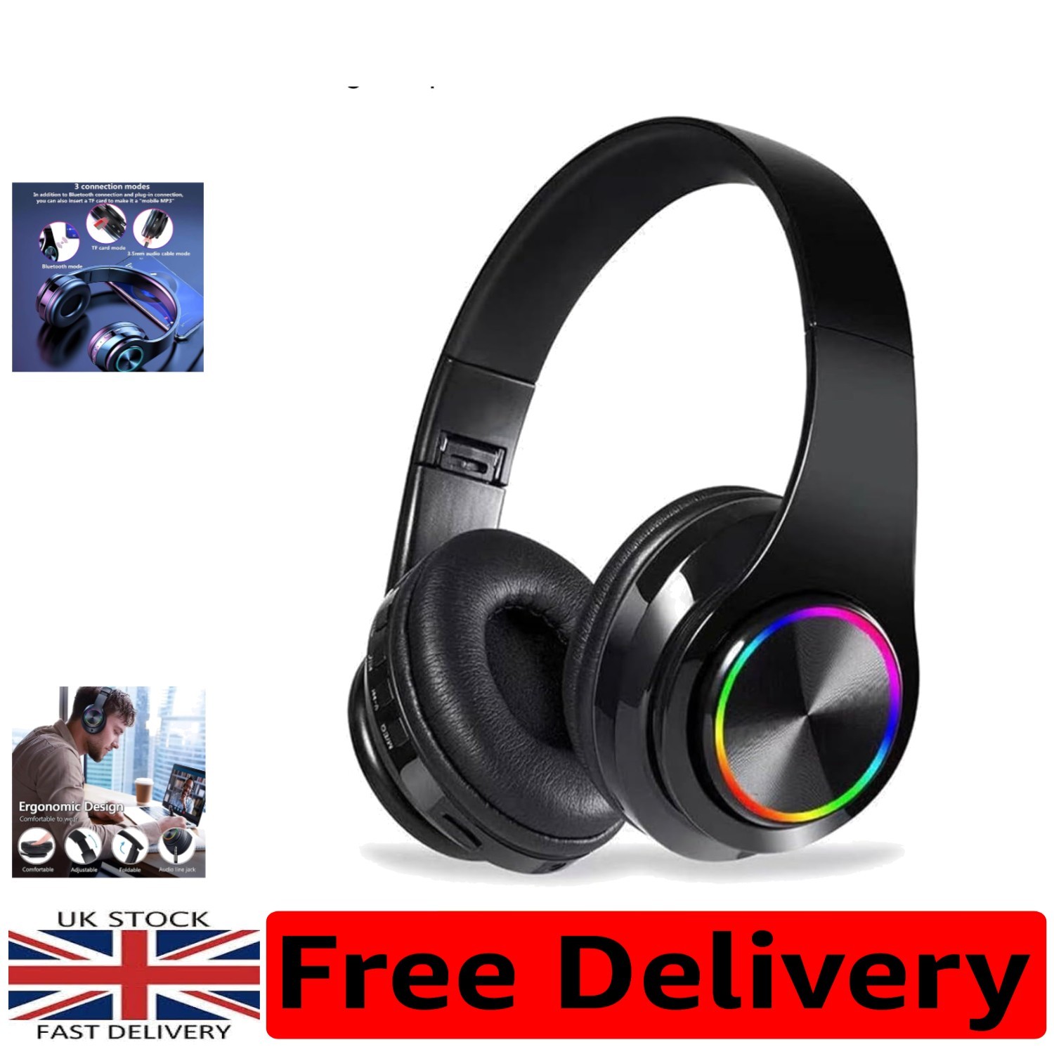 Uliptz Wireless Headphones Over Ear, 65 Hrs Playtime Bluetooth Headphones, 6 EQ Modes Foldable Lightweight Headphones Wireless, Foldable Bluetooth 6.0 for Travel/Office/PC (Black)