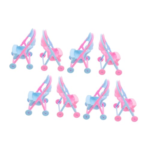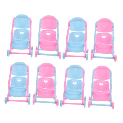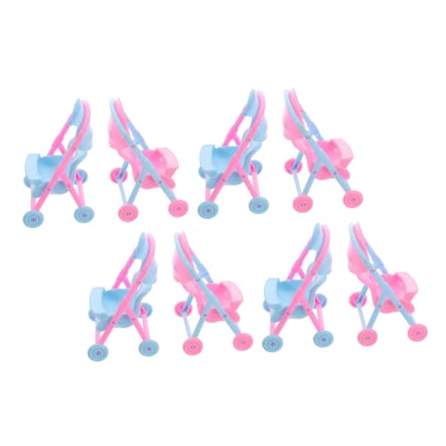 FELTECHELECTR 8pcs Miniature Doll Stroller Lightweight Plastic Pushchair for Role Play Dollhouse Projects Portable Pretend Play Accessories