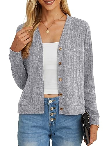 GRECERELLE Women's Crop Cardigan Summer Long Sleeve V-Neck Button Down Knit Lightweight Outerwear Shrug Shawl Bolero Cardigans for Ladies (Grey, M)