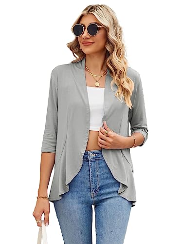 Famulily Summer Cardigans for Women, Casual Soft 3/4 Sleeves Open Cardigan Lightweight (L, Grey)