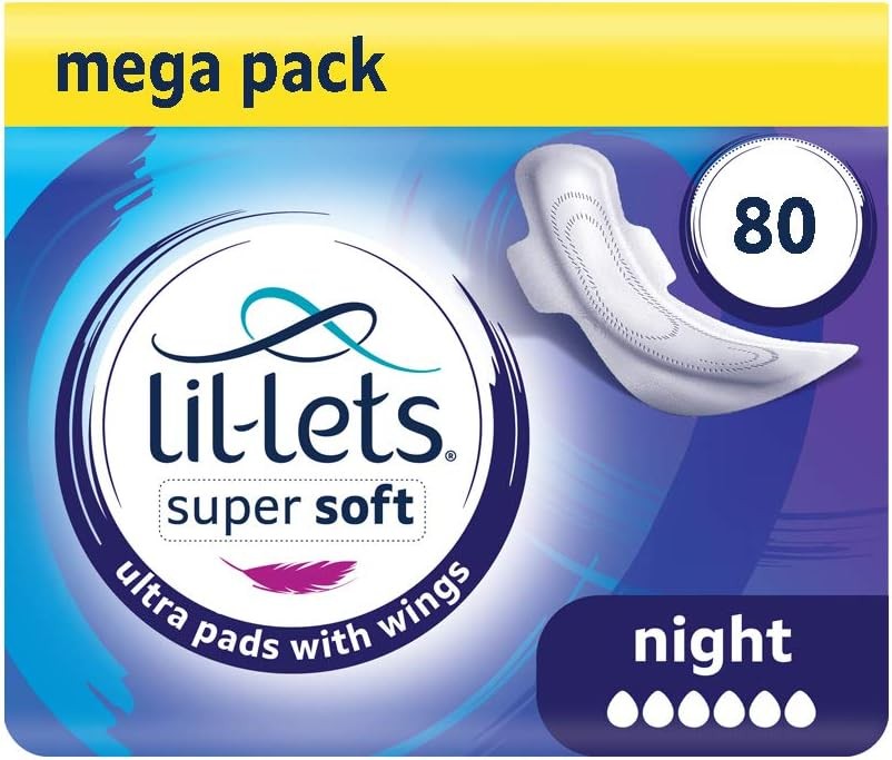 Lil-Lets Super Soft Ultra Thin Period Pads-80 Count Night Absorbency with Wing