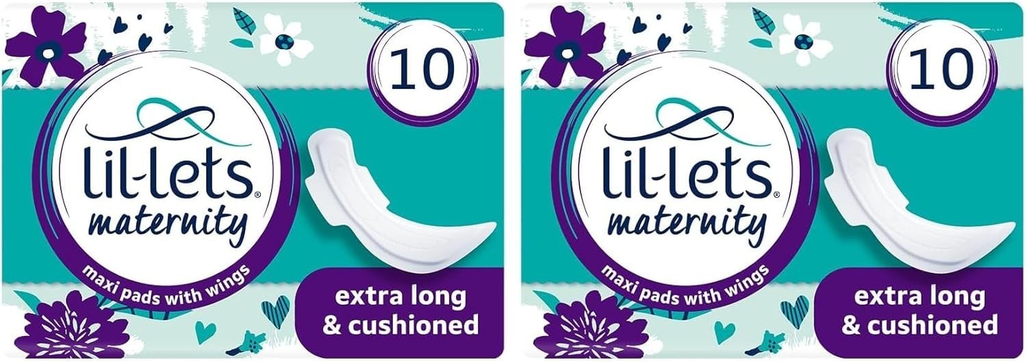 Lil-Lets Maternity Pads | 10 x Extra Long Maxi Thick Pads with Wings (Pack of 2)