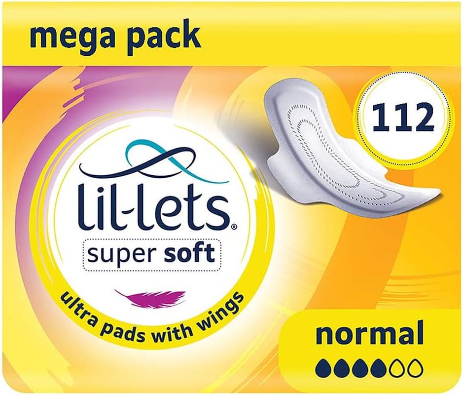 Lil-Lets Super Soft Ultra Thin Period Pads-112 Count, Normal Absorbency, with Wi