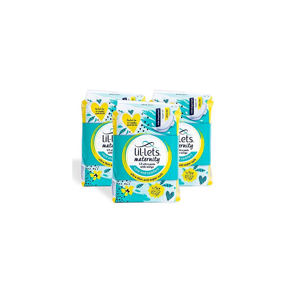 Lil-Lets Maternity Ultra Pads | 36x Ultra Thin Long Pads with Wings | Perfect for 3+ Weeks Post Birth | 3 Packs of 12 Pads