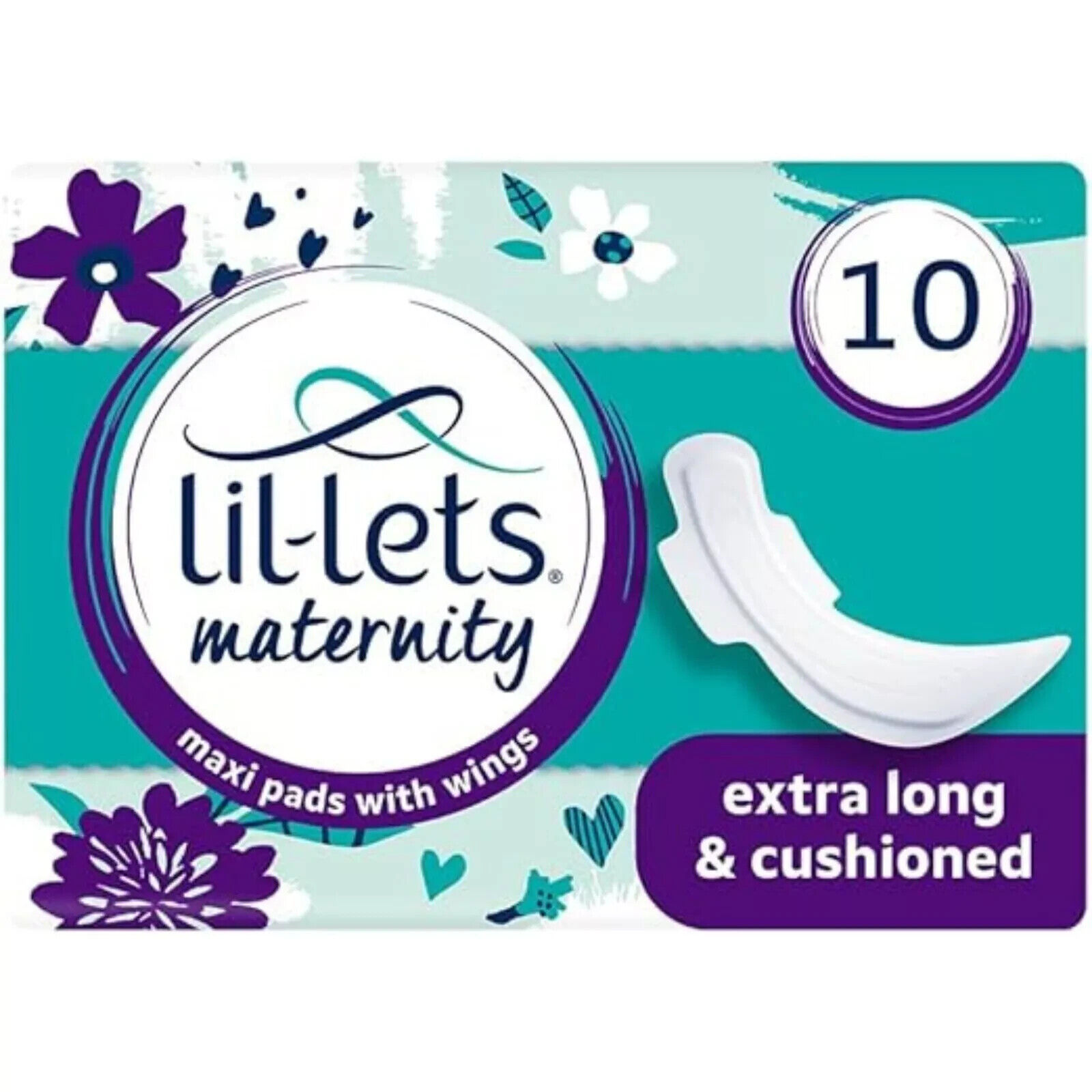 Lil-Lets Maternity Pads | 10 X Extra Long Maxi Thick Pads with Wings