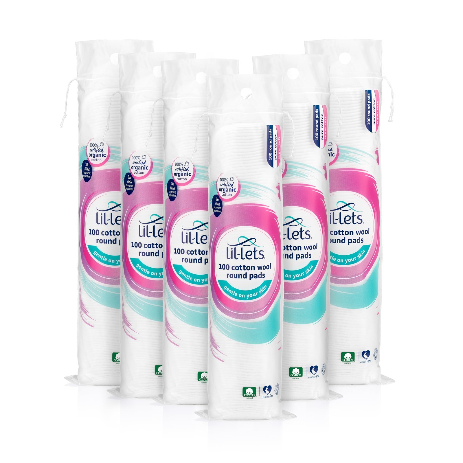 Lil-Lets Cotton Wool Round Pads, 6 x 100 Count, Certified One Size, White