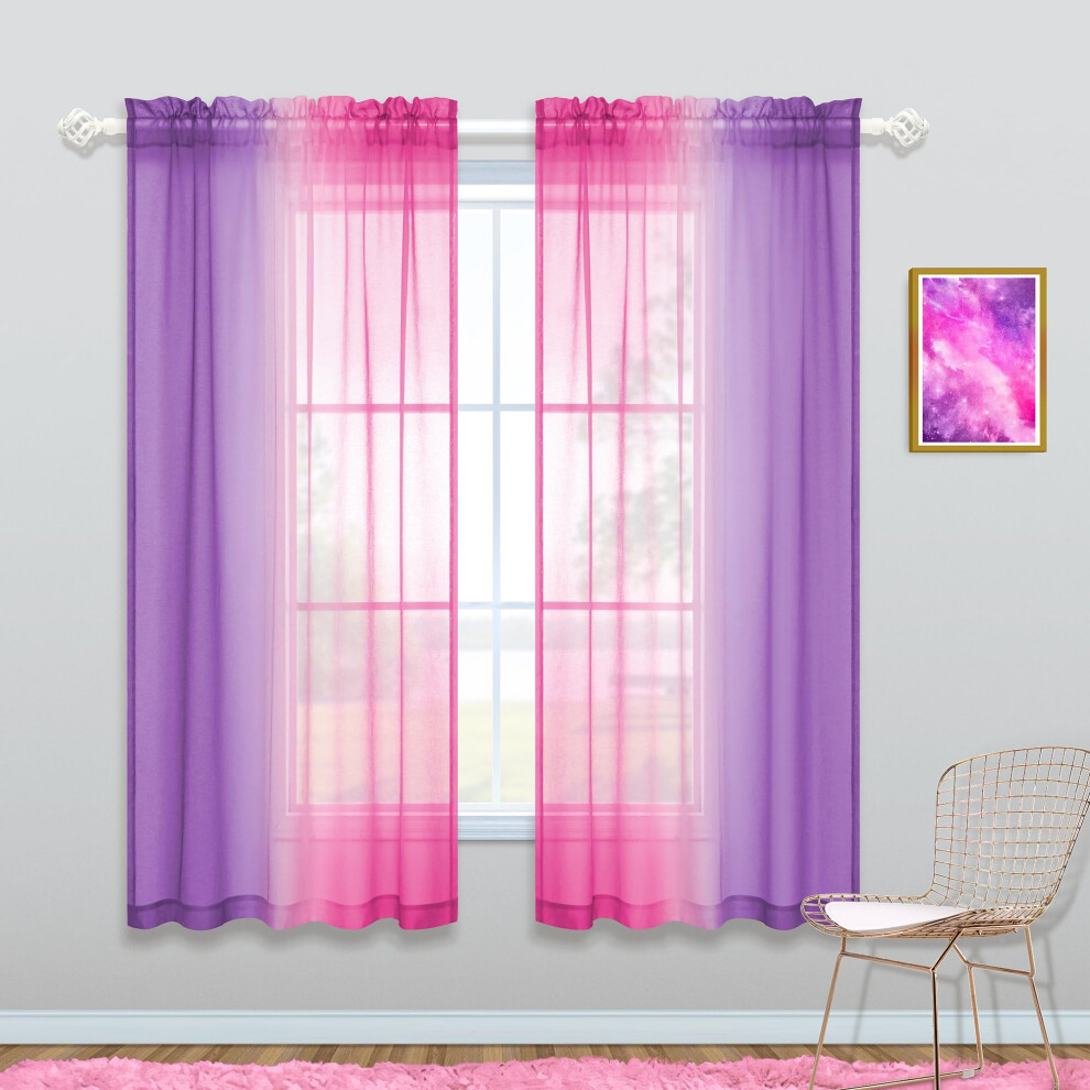 Pink and Purple Curtains for Girls Room Decorations Set 1 Sheer Panel Window Voile Ombre Lilac Little Princess Room Decor for Girls Bedroom Teen Kids