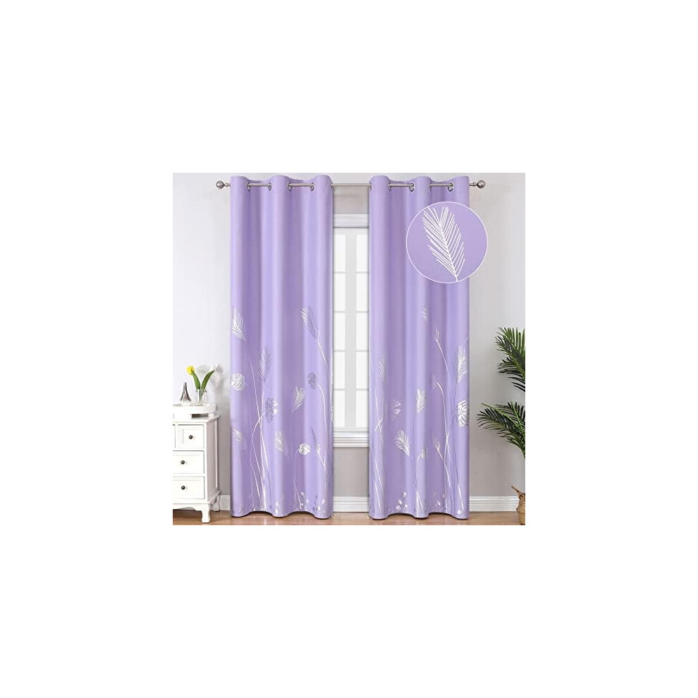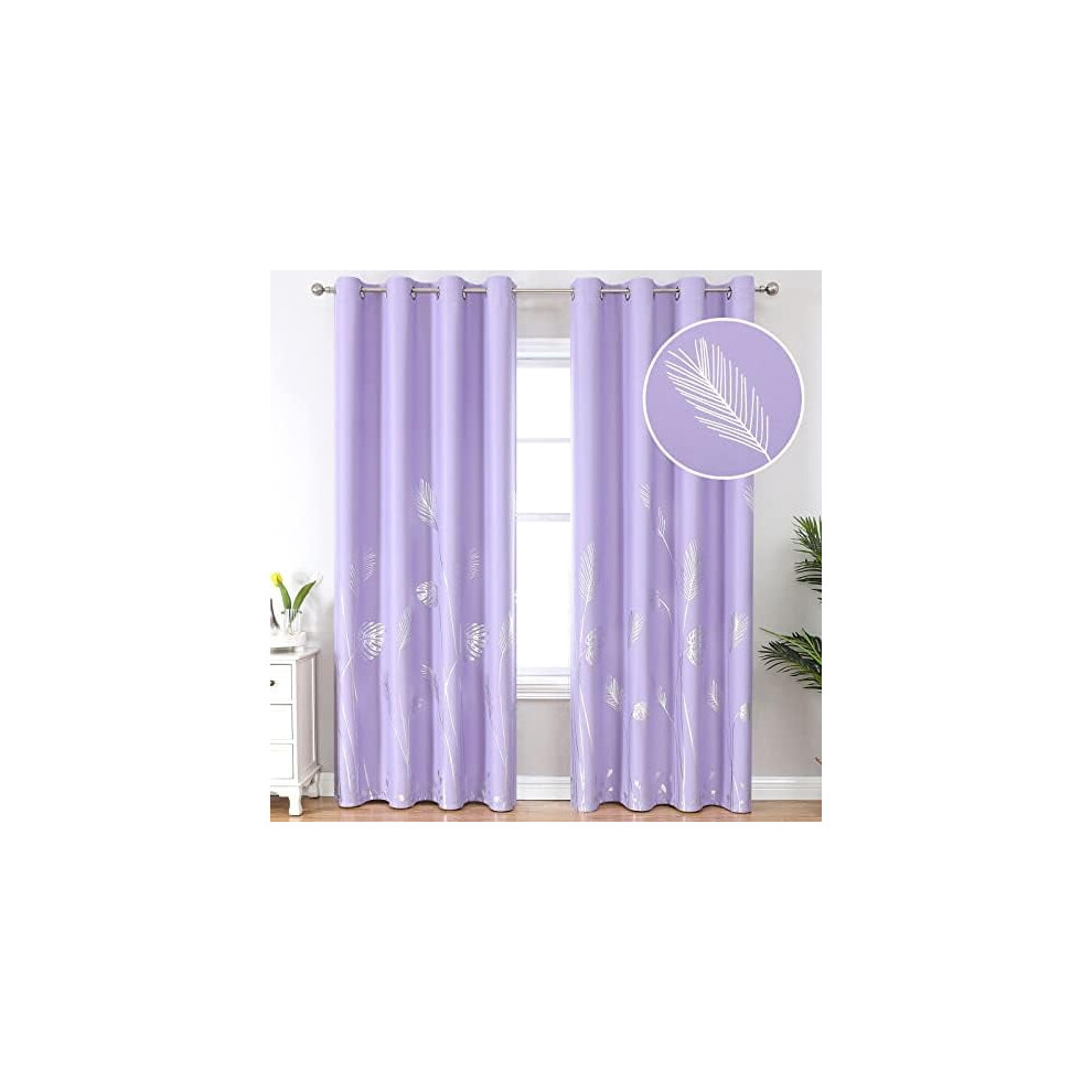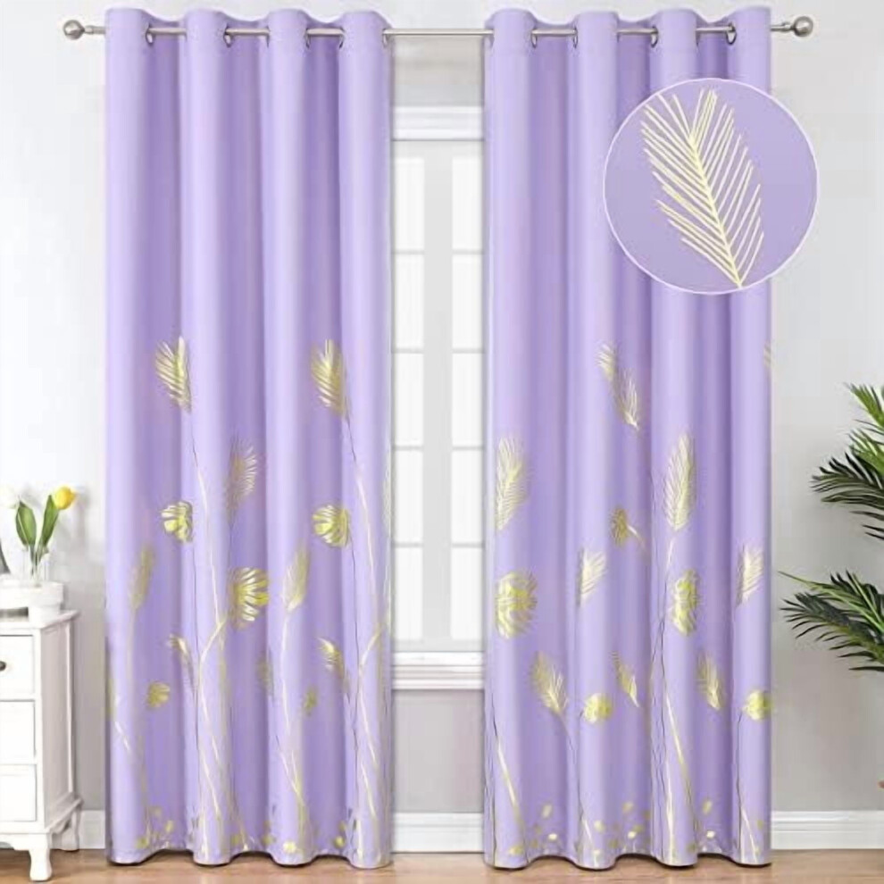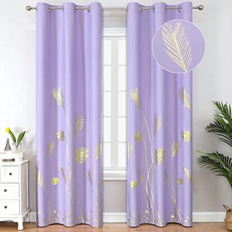 Lilac Blackout Curtains 42x84in, Gold Palm Pattern, Thermal Insulated, Room Darkening â 2 Panels, Compatible with Standard Rods