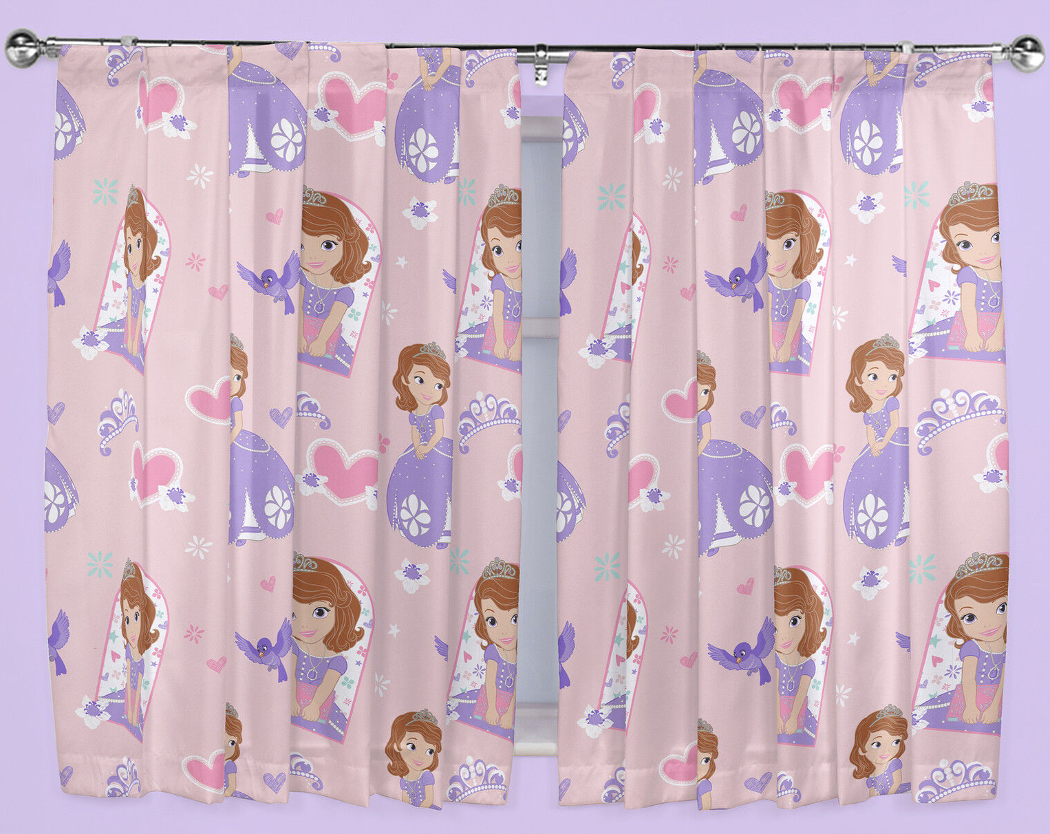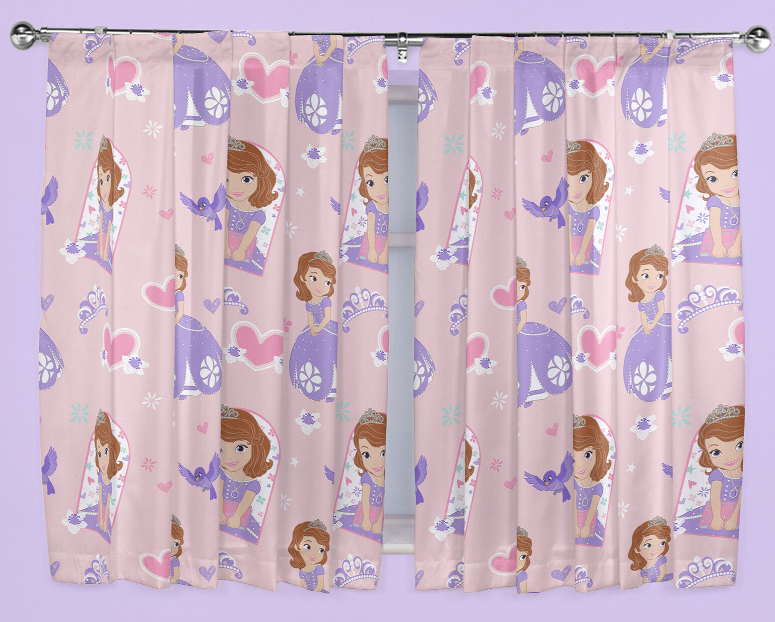 66"x72" CURTAINS SOFIA THE FIRST ACADEMY HEARTS FLOWER MIA BIRD CROWN LILAC PINK