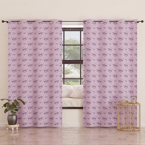 PETTI Artigiani Italiani - Panel Curtains for Interior with Rings 2 Pieces 140 x 280 cm, Blackout Curtain for Bedroom and Living Room, Insulating and Modern, Lilac Bow, 100% Made in Italy