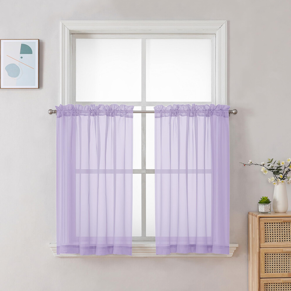Chyhomenyc Sheer Lilac Valances for Windows 2 Pack Small Window Curtains for Living Room Bathroom Cafe Laundry Basement Modern Top Dual Rod Pocket V