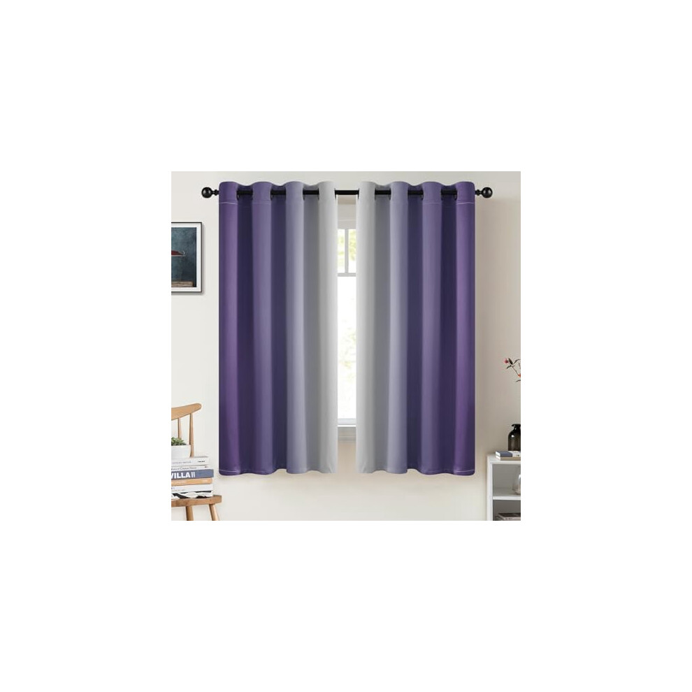 Ombre Lilac Grommet Curtains 52x63 in, Room Darkening & Thermal Insulated, 2 Panels â Compatible with Standard Rods