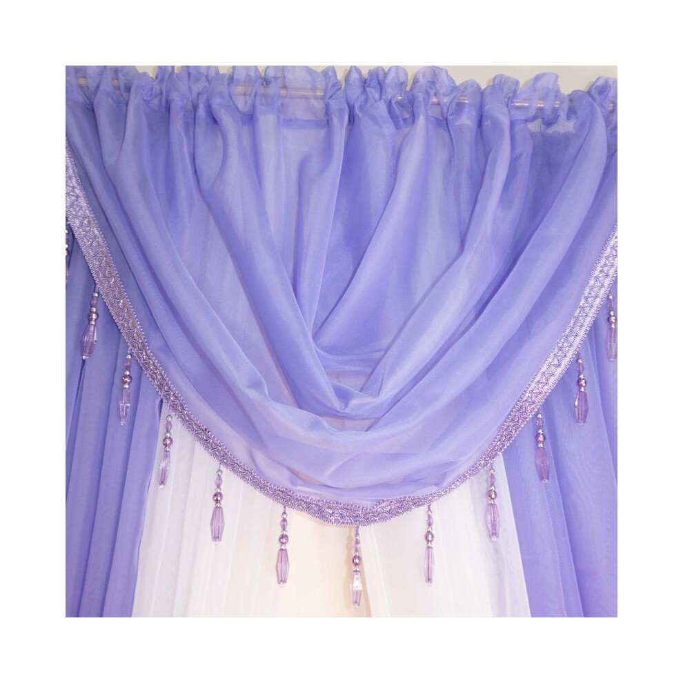 Treatmentex Pom-Pom Sheer Curtains for Girl's Bedroom 84 inches Long Voile Curtain Panels Rod Pocket Lilac 52" w x 2pc