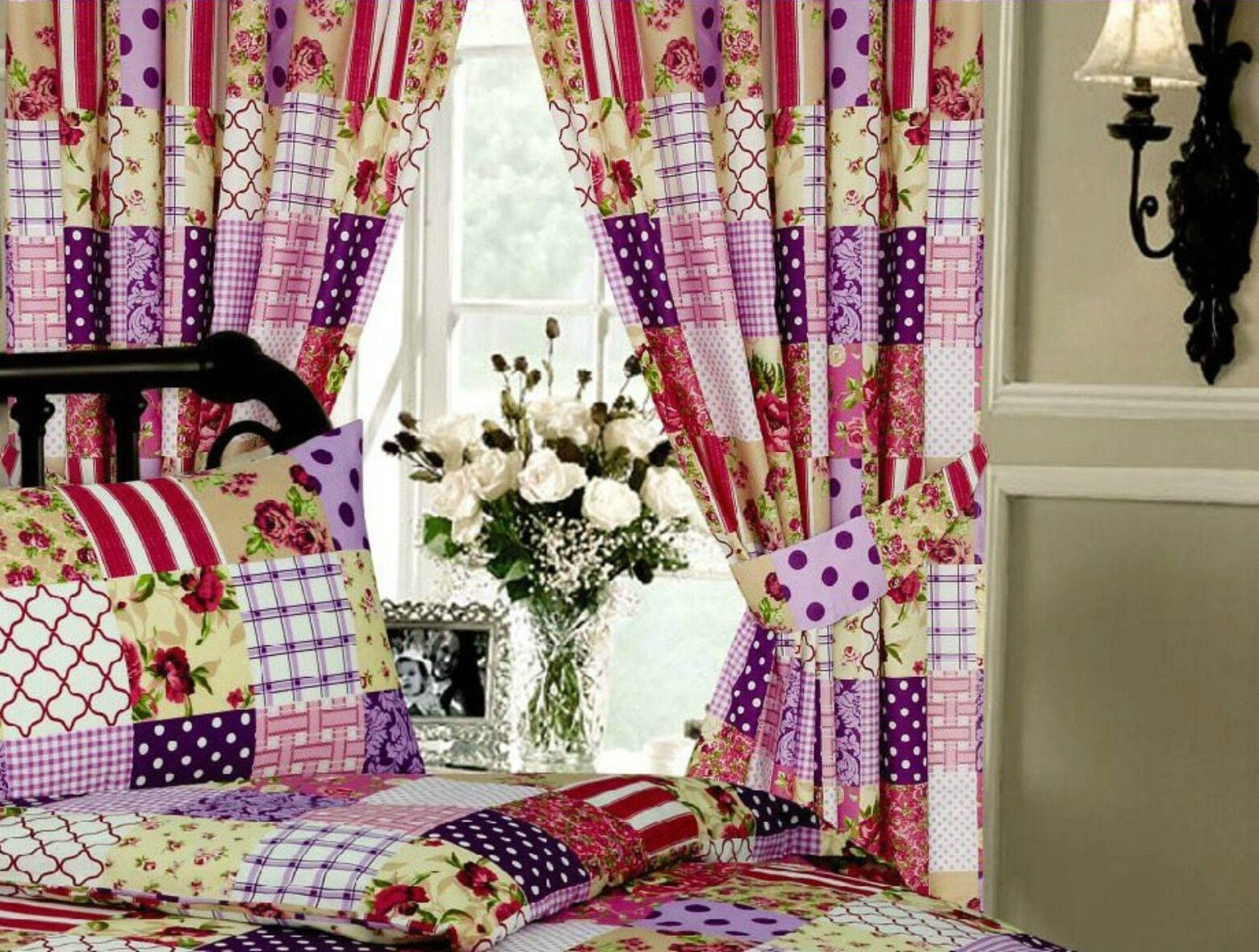 66" x 72" PENCIL PLEAT CURTAINS MATCHING TIE BACKS PATCHWORK PLUM LILAC 68 PICK