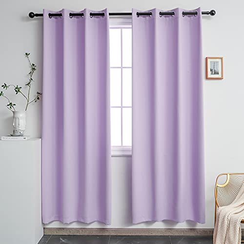 KOUFALL Lavender Curtains for Bedroom Girls 2 Panels Set Blackout Light Blocking Thermal Insulated Curtains for Teen Room Dorm Violet Lilac Purple 42 x 63 Inch Length