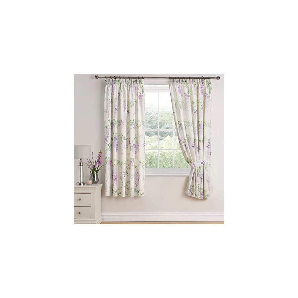 Dreams & Drapes - Wisteria Purple Floral Curtains W66 x L72" (168 x 183cm) - Botanical Pencil Pleated Curtains - Lilac Flower Curtains - Spring