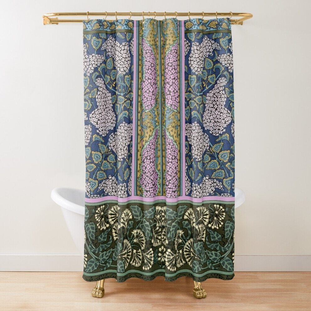 Shower Curtains ART NOUVEAU LILACS AND LEAVES Lilac Yellow Blue Green Floral Composition for Bathroom Decor 72x72 inches