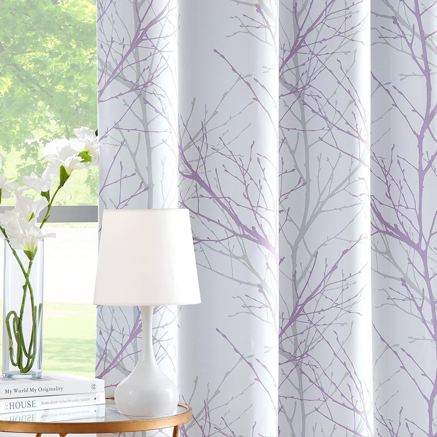 Fmfunctex Lilac Blackout Curtains for Bedroom 90 Drop Tree Branch Eyelet Curtains for Living Room Thermal Insulated Window Curtain Drapes for Dining