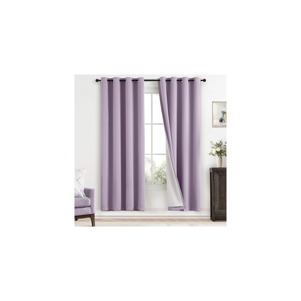 Fmfunctex Blackout Thermal Curtains for Living Room 90 Inch Drop Lilac White Ey