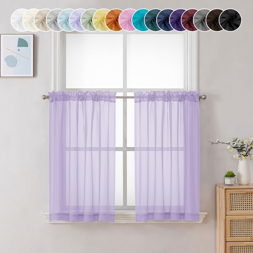 Chyhomenyc Lilac Sheer Curtains 36 inch Length 2 Panels Light Filtering Voile Rod Pocket Short Window Curtians for Bathroom Living Room Farmhouse Sma