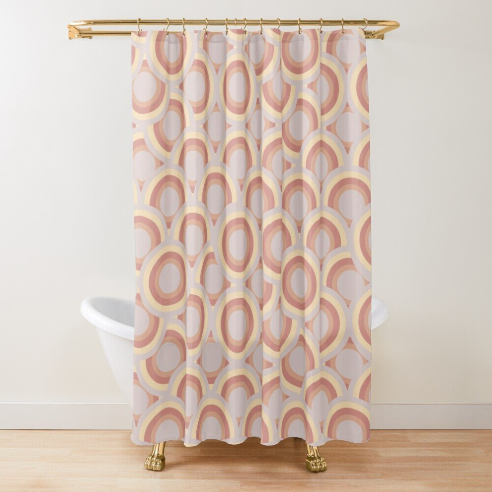 Shower Curtains 70s Style Pastel Red Lilac Graphic Circle/Dot Pattern for Bathroom Decor 72x72 inches