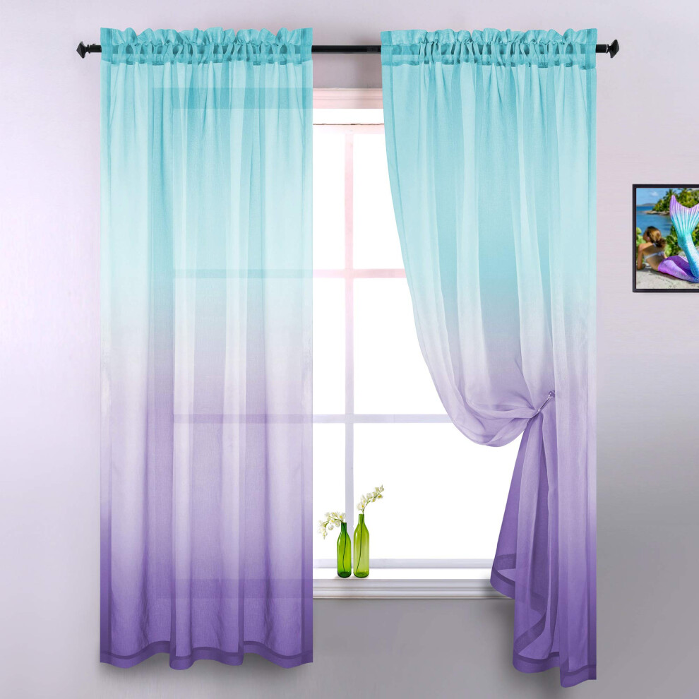 Lilac and Turquoise Curtains for Bedroom Girls Room Decor Set of 2 Panels Ombre Patterned Window Semi Sheer Curtains for Living Room Kids Nursery Merm