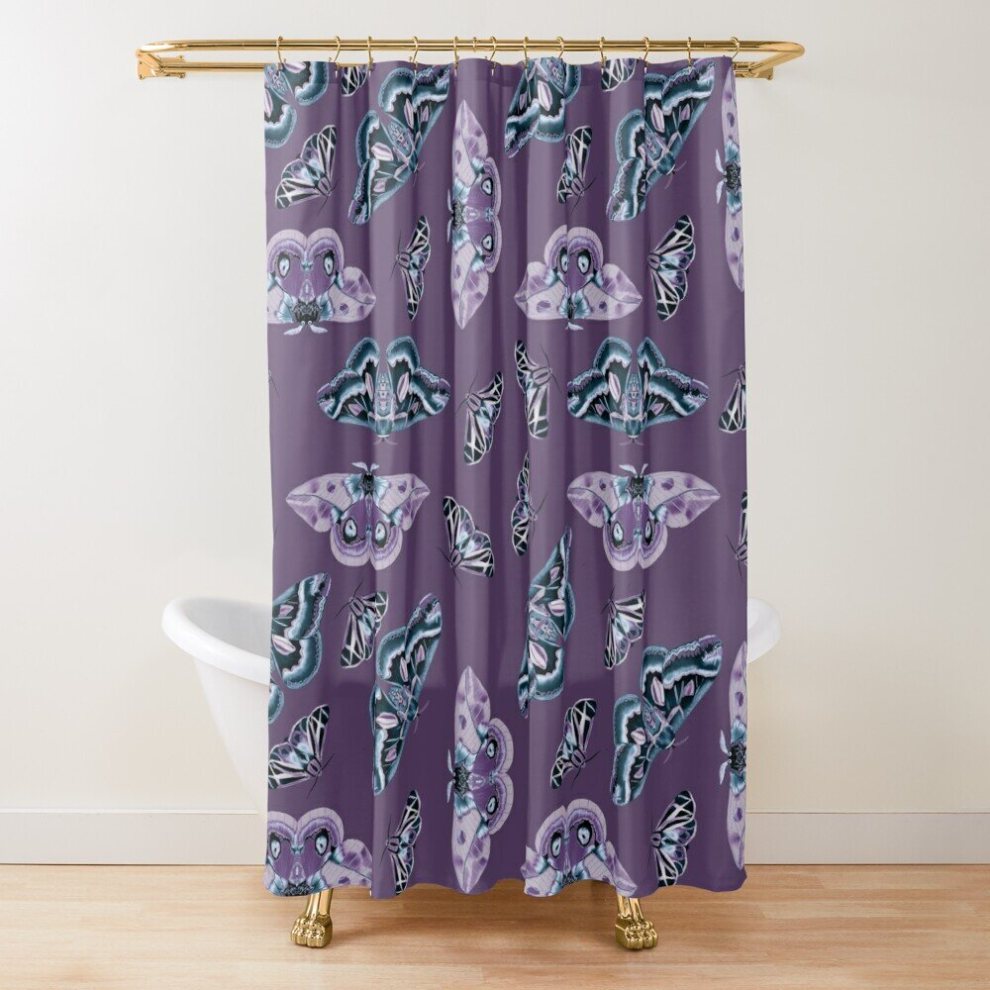 Shower Curtains Purple lilac moths for Bathroom Decor 72x72 inches