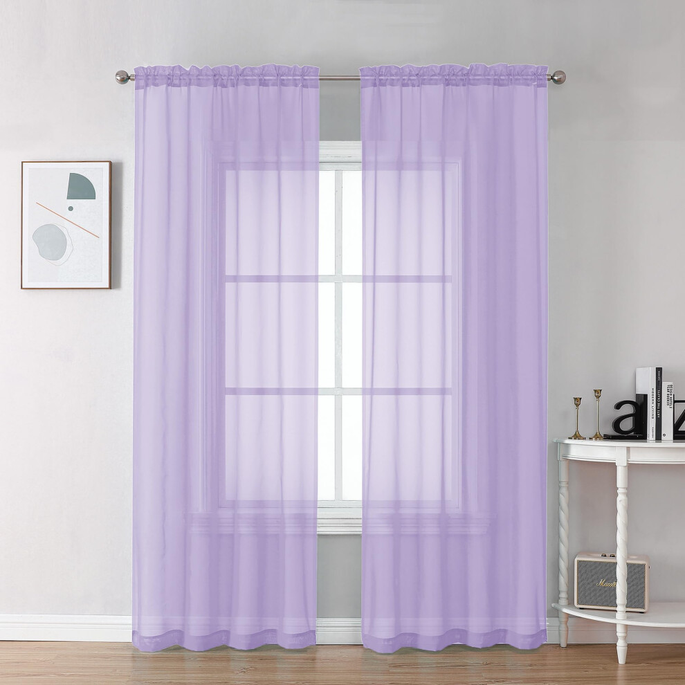 Chyhomenyc Lilac Sheer Curtains 72 Inch Length 2 Panels Light Filtering Soft Airy Rod Pocket Voile Window Curtain Drapes for French Door Bedroom Livi