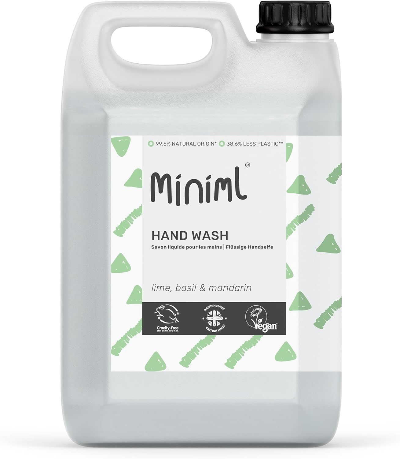 Miniml Hand Soap Wash Liquid 5L Refill - Lime, Basil & Mandarin Infused Hand, Skin & Body Wash Gel for Soft and Sensitive Skin Care - 100% Vegan & Cruelty Free