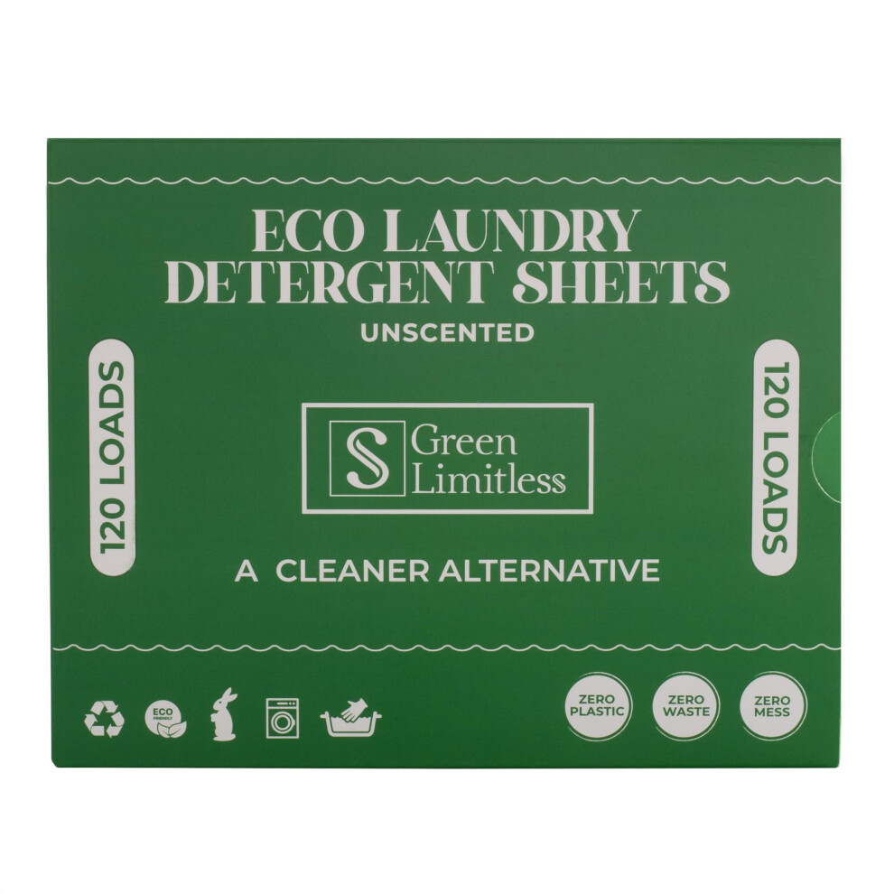 Green Limitless Eco Laundry Detergent 120 Sheets (Loads) Unscented. All the benefits of a liquid detergent, washing powder, or washing pods without