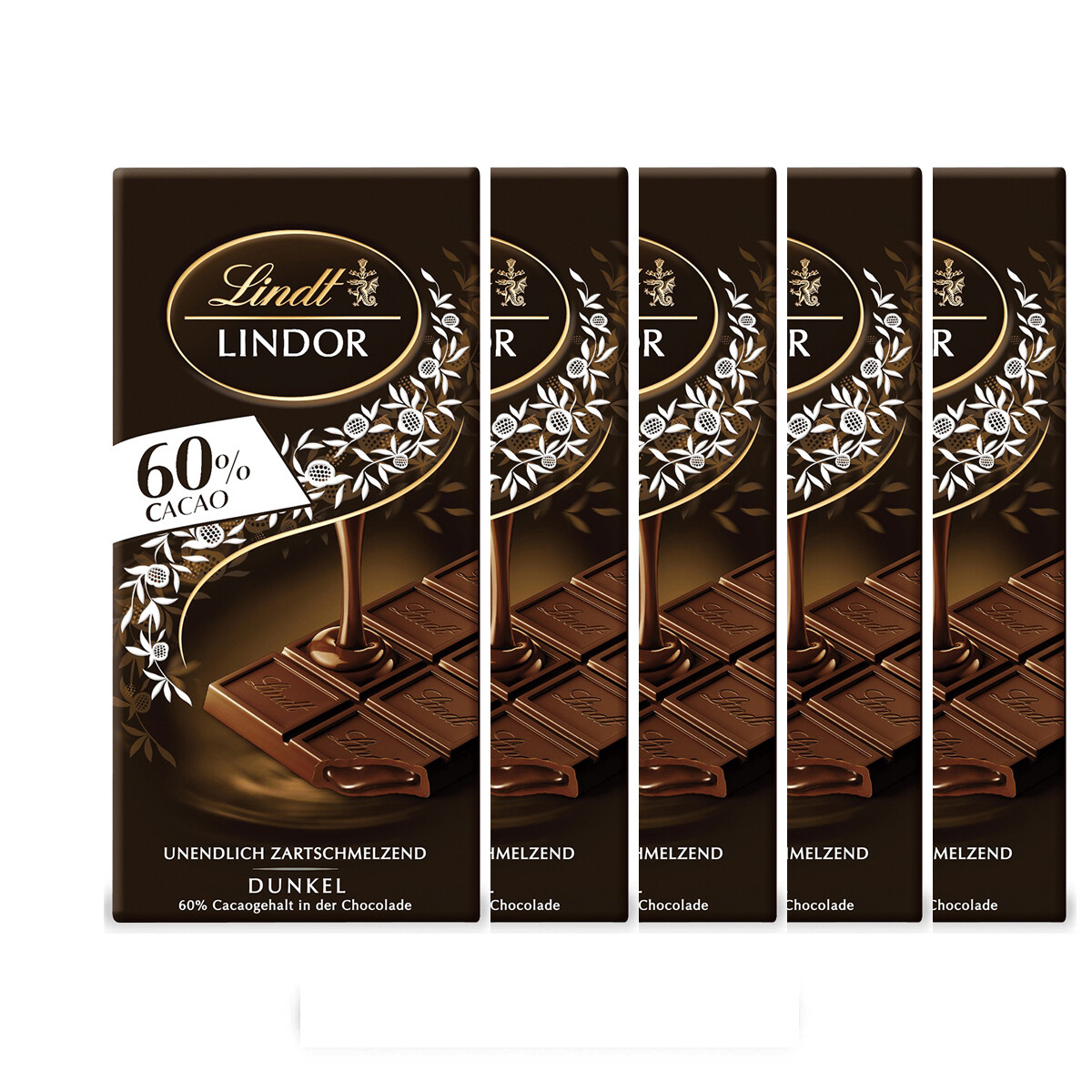 Lindt Lindor Cocoa Dark Chocolate Bar 100g 5 Pack