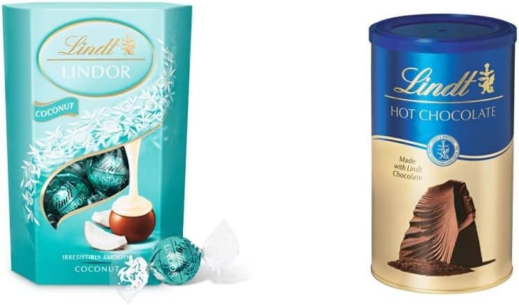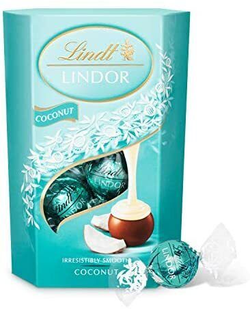 Lindt Lindor Coconut Milk Chocolate Truffles Box - Approx 16 balls, 200g - Chocolate Truffles with a Smooth Melting Filling - For Him or Her for Valentines Day & Hot Chocolate, 300g