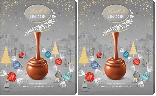 Lindt Lindor Assorted Silver Advent Calendar 2025 – 233g – 24 Premium Chocolate Truffles – Elegant Christmas Countdown Gift for Him & Her (Pack of 2)