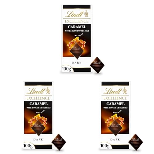 Lindt Excellence Dark Caramel Chocolate Bar with a Touch of Sea Salt - 100 g (Pack of 3)