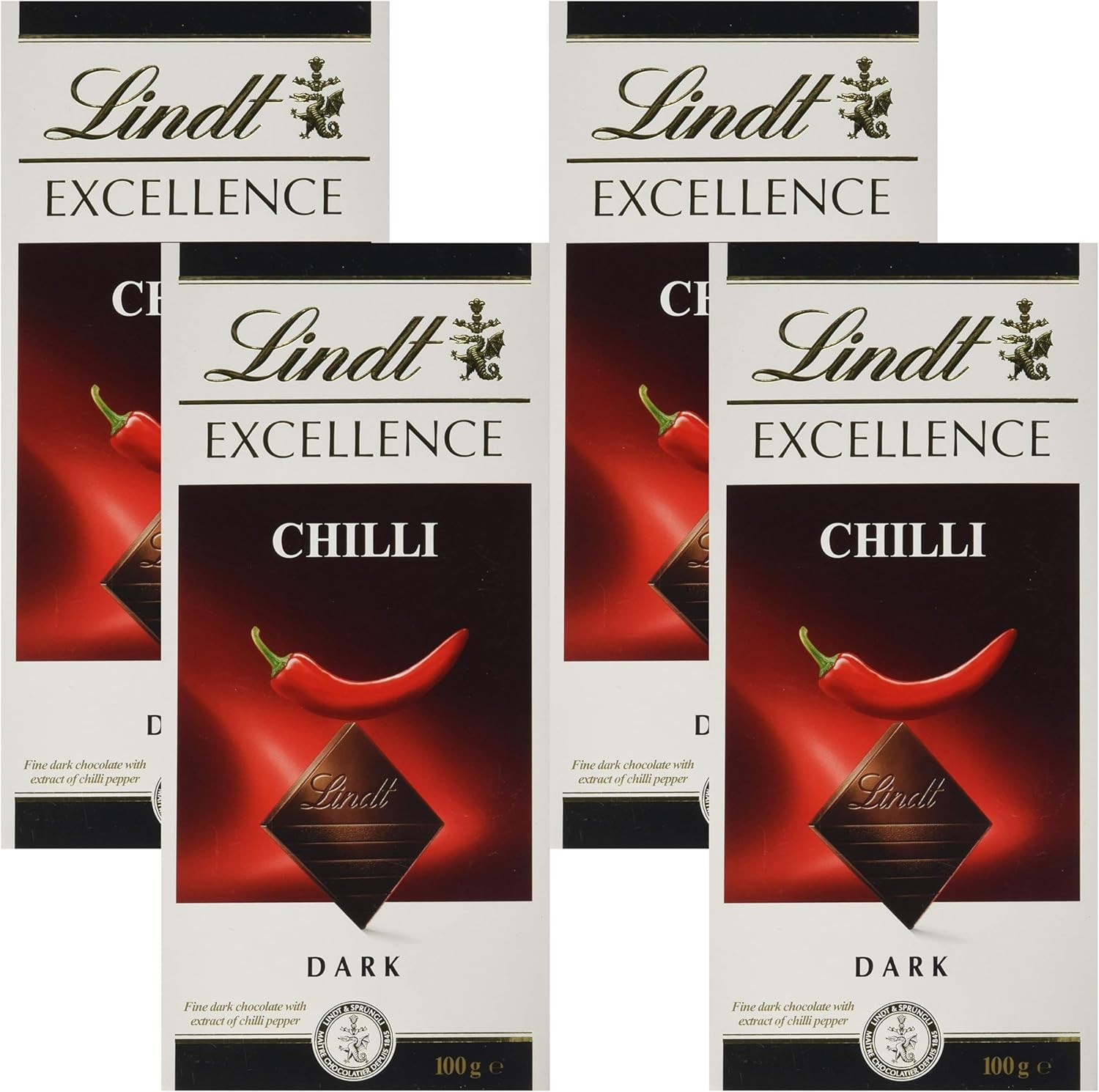 Lindt Excellence Dark Chilli Chocolate Bar Each 100g (Pack of 4)