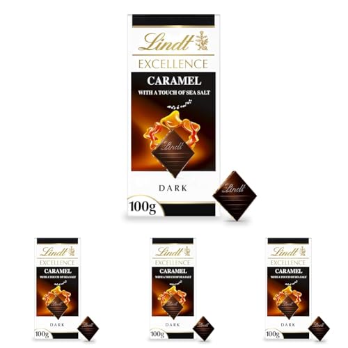 Lindt Excellence Dark Caramel Chocolate Bar with a Touch of Sea Salt - 100 g (Pack of 4)