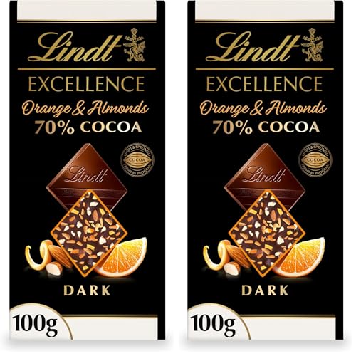 Lindt Excellence Passion Orange and Almond Dark Chocolate Bar 100g (Pack of 2)