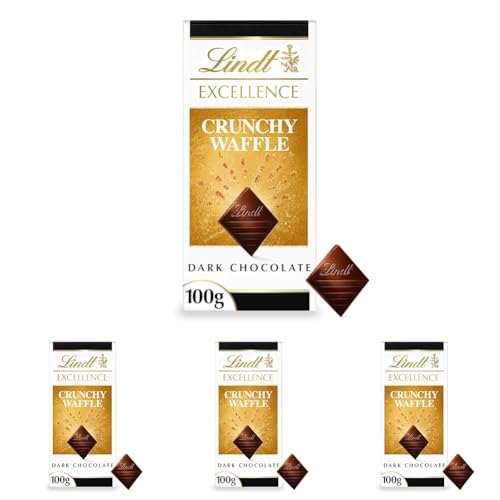 Lindt Excellence Dark Chocolate Crunchy Waffle Bar 100g (Pack of 4)