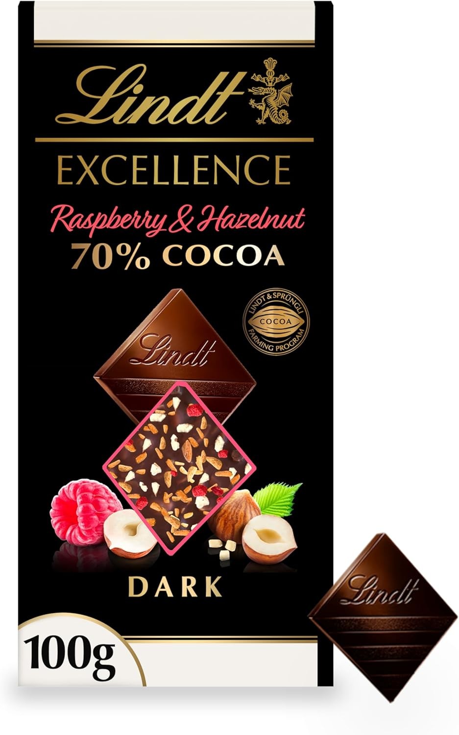 Lindt Excellence Passion Raspberry and Hazelnut Dark Chocolate Bar 100g