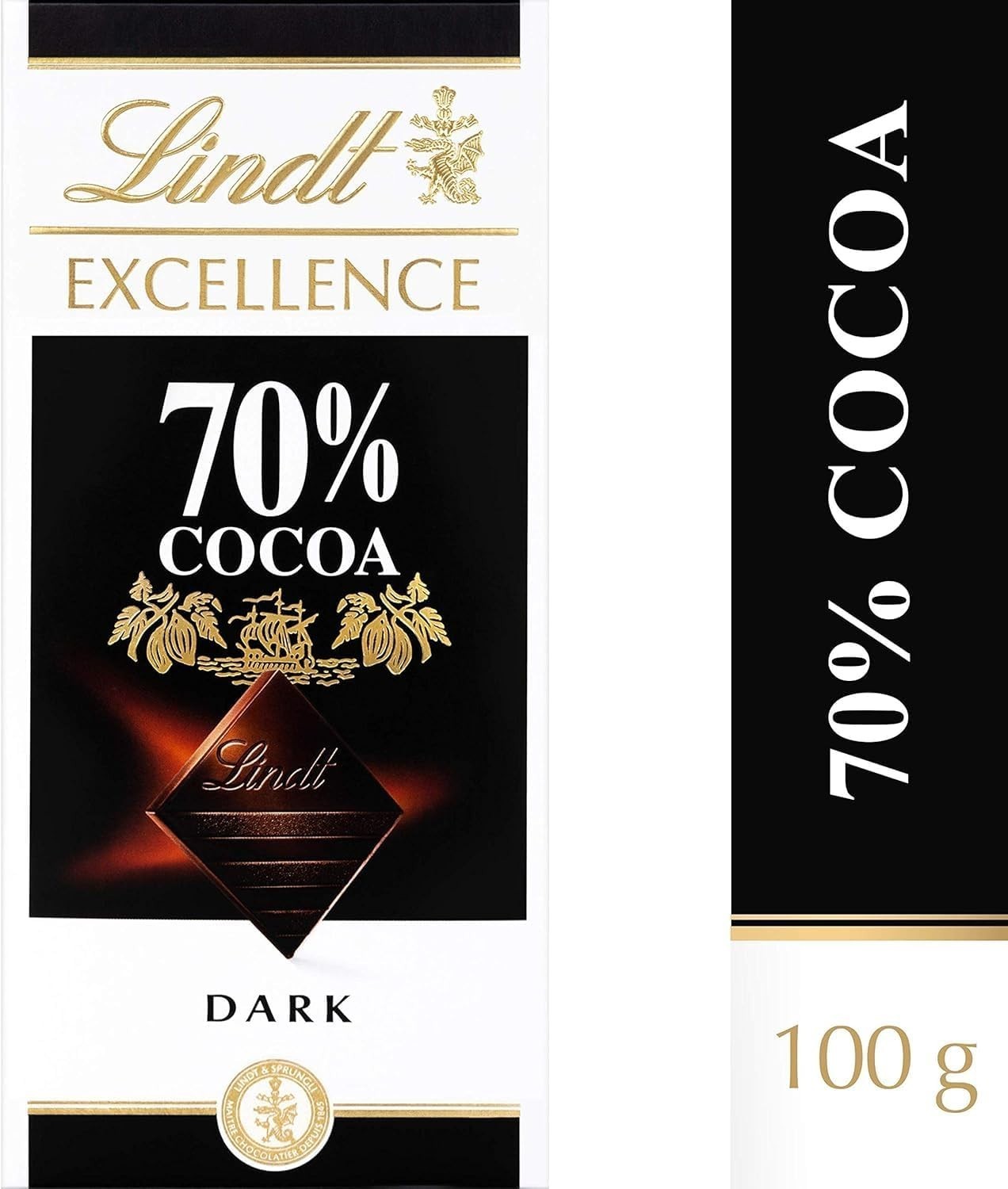 Lindt Excellence Dark Chocolate Bar, 70% Cocoa, 100g, Pack of 1