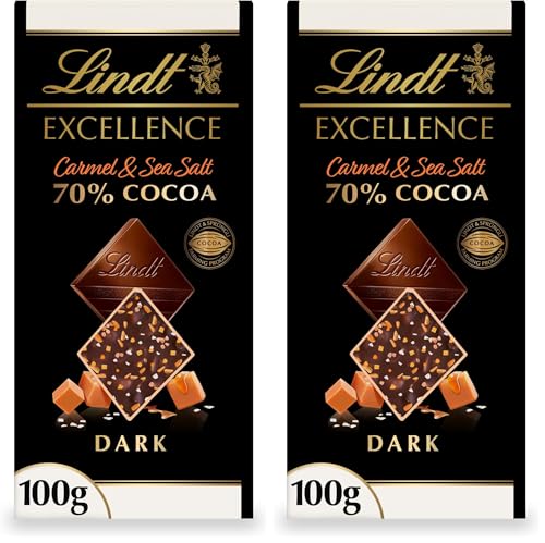 Lindt Excellence Passion Caramel and Sea Salt Dark Chocolate Bar 100g (Pack of 2)