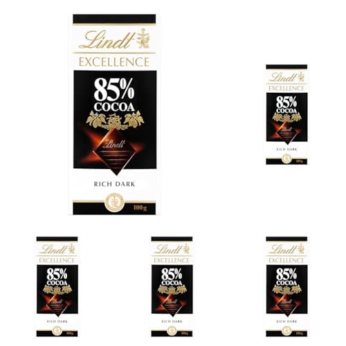 Lindt Excellence Dark 85% Cocoa Chocolate Bar, 100g (Pack of 5)