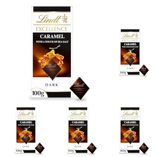 Lindt Excellence Dark Caramel Chocolate Bar with a Touch of Sea Salt - 100 g (Pack of 5)