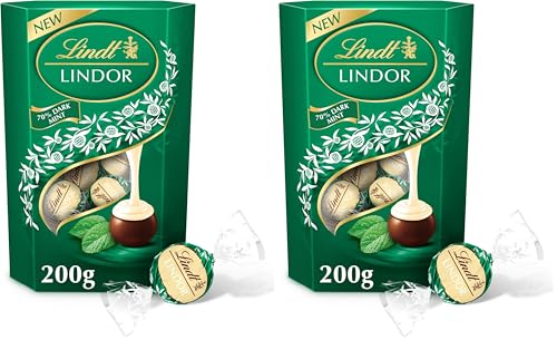 Lindt Lindor Dark Mint Chocolate Truffles – 200g Box (Approx. 16 Balls) – Smooth Filling – Halloween Treat, Christmas, Gift, Birthday, Congratulations (Pack of 2)