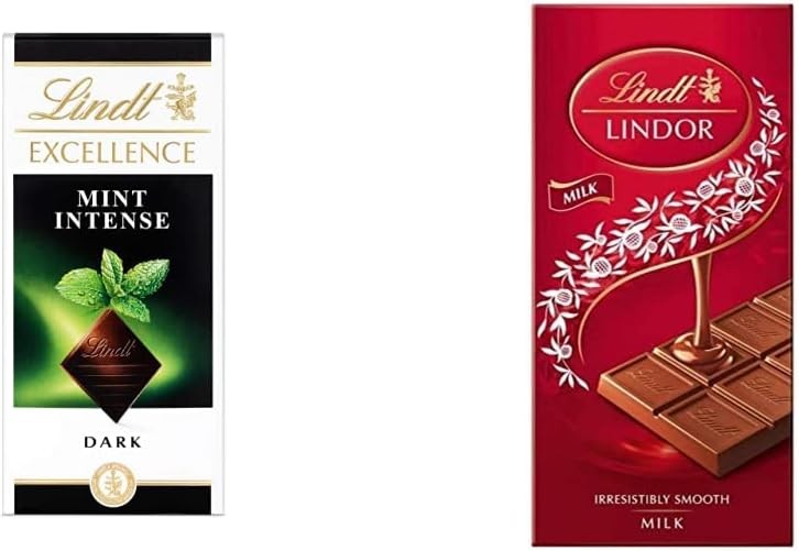 Lindt Excellence Dark Mint Chocolate Bar Each 100g & Lindor Milk Bar, 100g