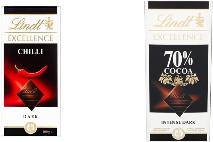 Lindt Excellence Dark Chilli Chocolate Bar Each 100g & EXCELLENCE Dark 70% Coco