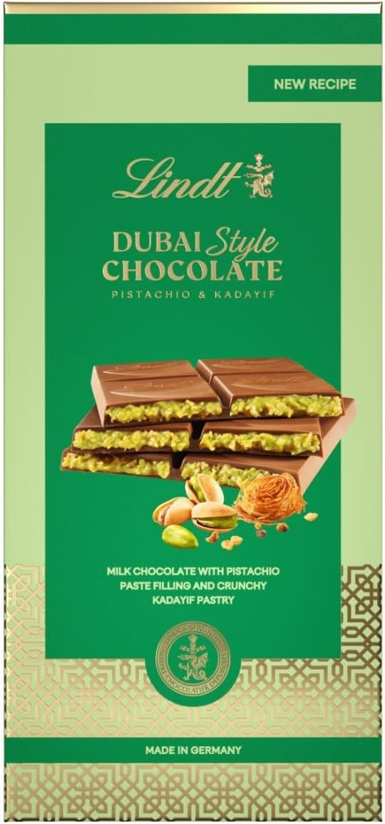 Lindt Dubai Style Chocolate Bar, Milk Chocolate with Pistachio and Crunchy Pastry, Made in Germany